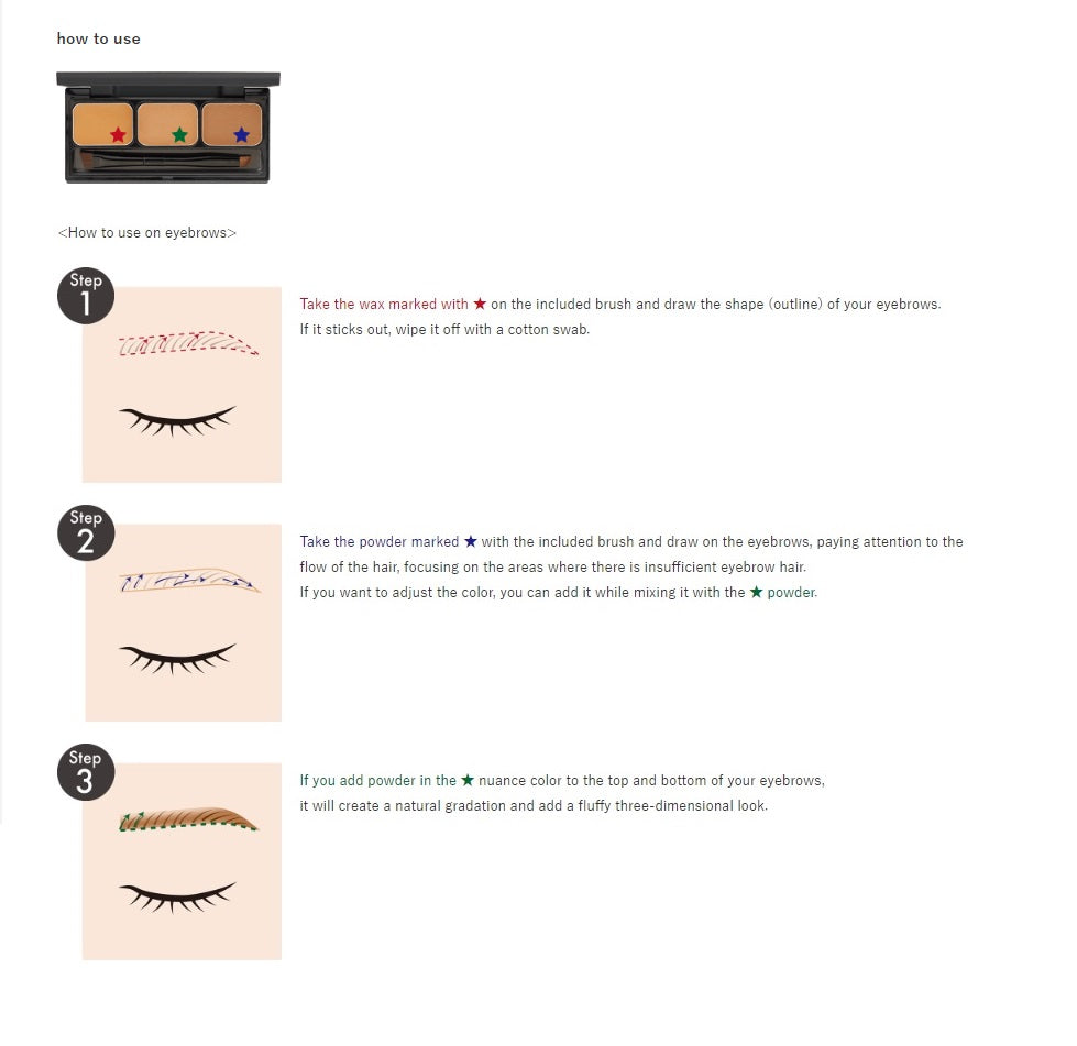 - 可用於眉妝以調整眉毛的形狀和顏色形成自然的濃淡漸變,打造柔軟立體的眉毛