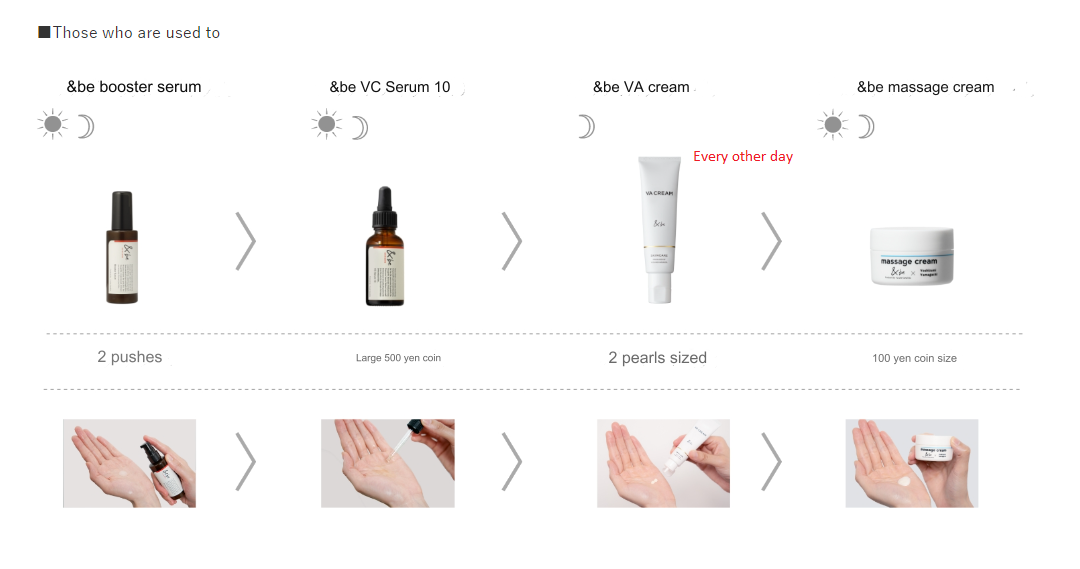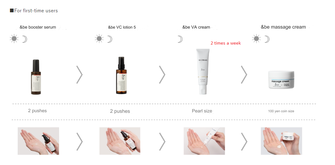 - 請在晚間洗臉並使用精華液或乳液準備肌膚後使用。避免在曬傷前後使用。