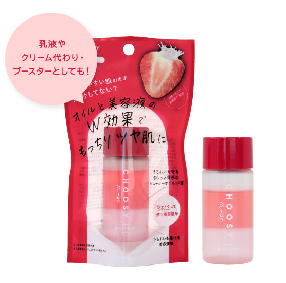 - 含有來自草莓的乳酸菌的油質精華液,為肌膚注入水分並滋潤肌膚,而油質則有助於鎖住水分,使肌膚保持水潤、緊緻和光澤,非常適合妝前使用。