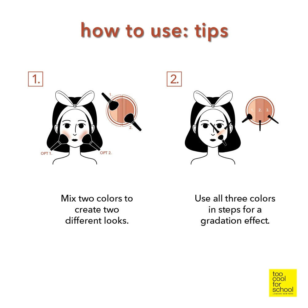 - 將中間和最深色的顏色調和,塗抹在臉頰和顴骨之間,打造活潑立體的臉頰。
